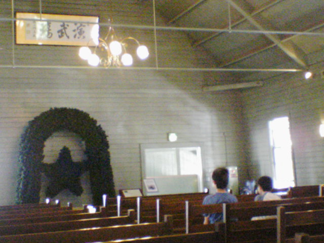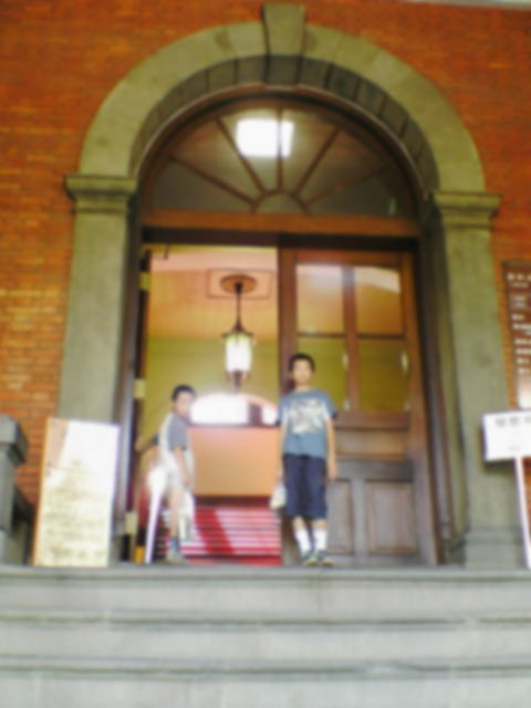 (2階のホールにて。式典出席気分に浸るふたり?!)